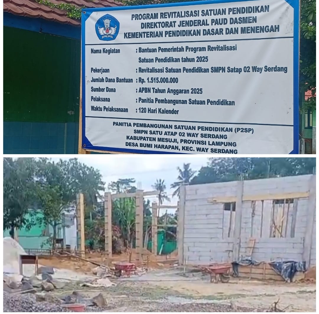 Mesuji — Proyek pembangunan fisik yang didanai melalui Dana Alokasi Khusus (DAK) di Sekolah Menengah Pertama Negeri (SMPN) Satu Atap 02 Way Serdang, Kabupaten Mesuji, provinsi Lampung, saat ini tengah menjadi sorotan tajam, setelah dimulainya pembangunan 2 (dua) ruangan kelas baru, 3 (tiga) ruangan rehap, dengan pagu anggaran Rp. 1.515.000.000 dengan biaya yang cukup fantastis.